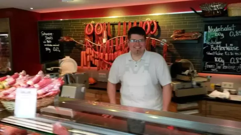 Eines Tages habe ich ganz stolz eine frisch von einem Metzger aus Burgfarrnbach eingetroffene "frische fränkische Bratwurst" unserem Metzger Michael Löffler in Neuss zum Probieren gegeben. "Altes Fleisch mit Glutamat" war sein vernichtendes Urteil. Es hat mich veranlasst, bei der Metzger-Innung in Nürnberg nachzufragen, ob Geschmacksverstärker in der Bratwurst üblich seien. Die Antwort kam von Gerhard Meyer. "Glutamat gehört nicht in die Bratwurst", war seine klare Auskunft. Seitdem bestelle ich bei ihm. In seiner Metzgerei in Nürnberg sind wir auch schon gewesen. Wirklich ein ganz feines Geschäft.